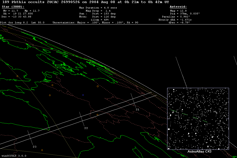 Occultation of 2UCAC 26990526 by 189 Phthia on 2004 Aug 08
