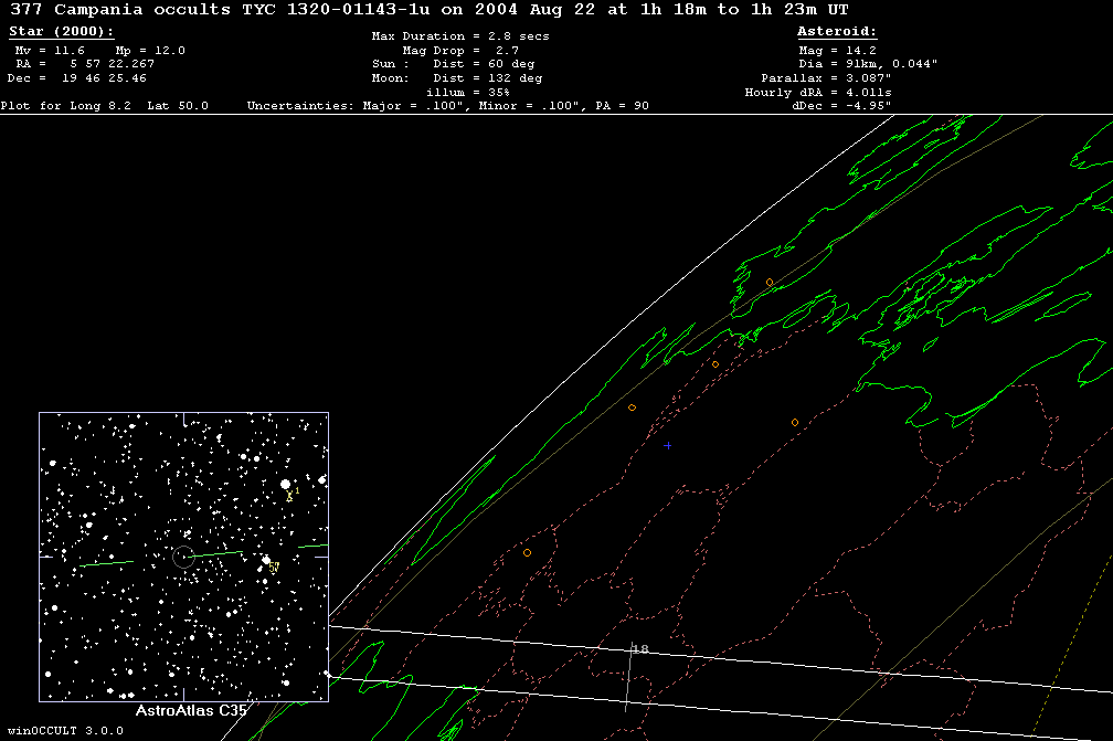Occultation of TYC 1320-01143-1u by 377 Campania on 2004 Aug 22