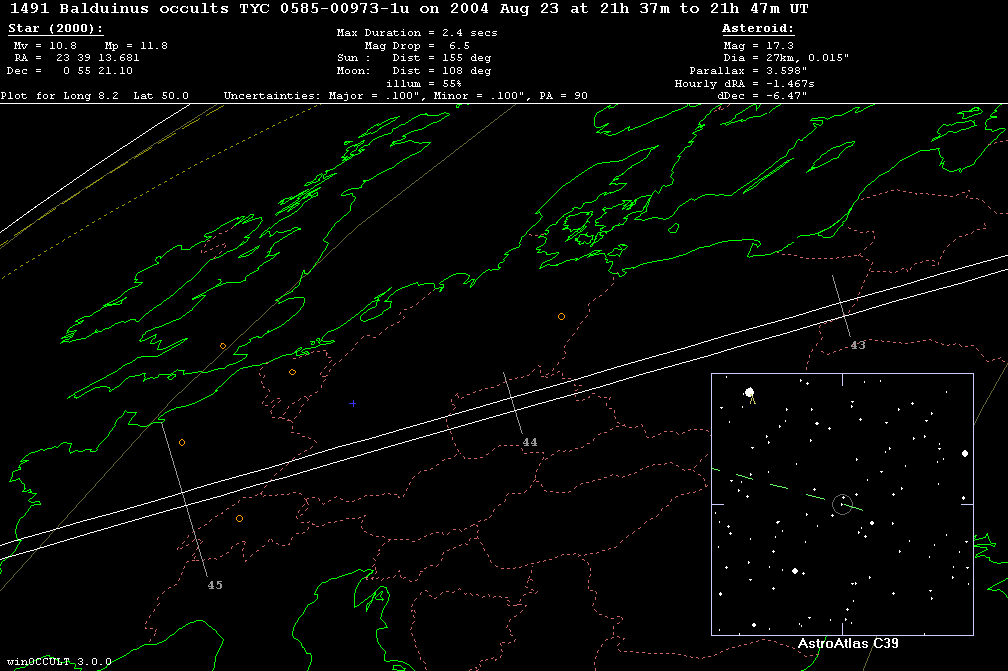 Occultation of TYC 0585-00973-1u by 1491 Balduinus on 2004 Aug 23