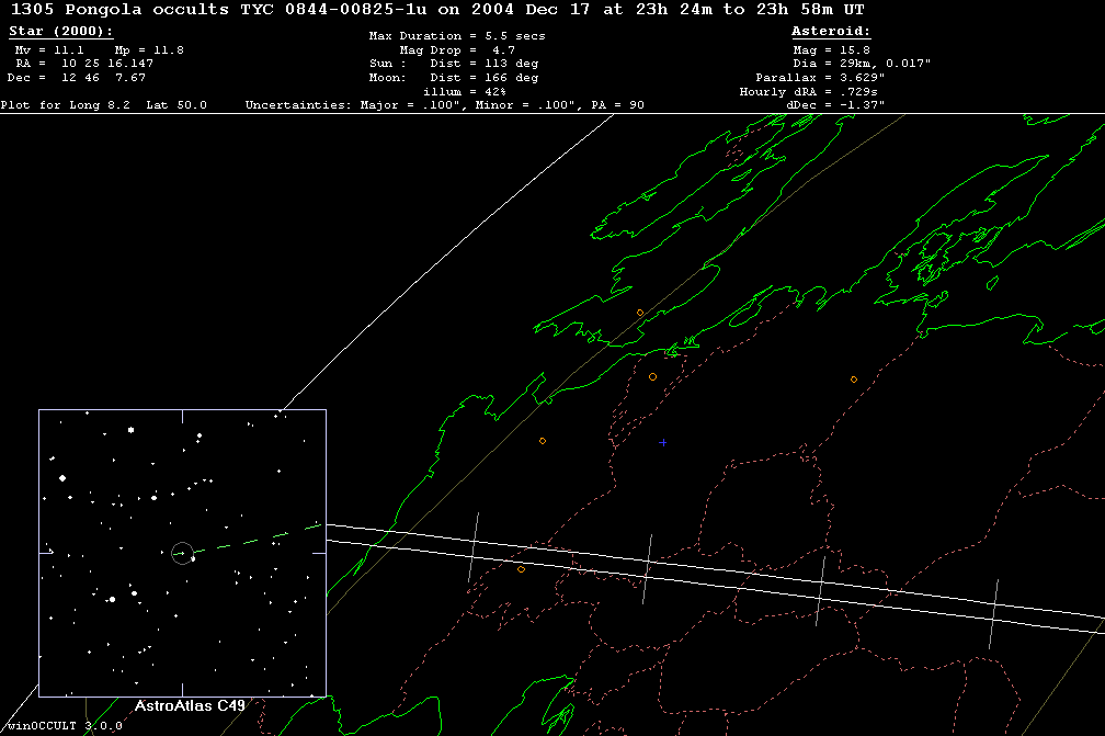 Occultation of TYC 0844-00825-1u by 1305 Pongola on 2004 Dec 17