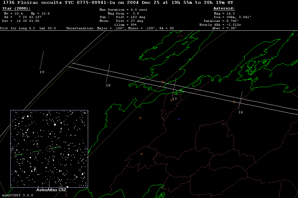 Occultation of TYC 0775-00941-1u by 1736 Floirac on 2004 Dec 25