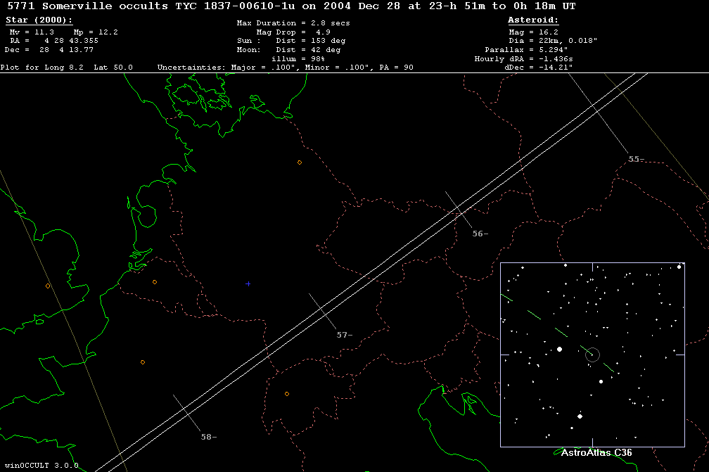 Occultation of TYC 1837-00610-1u by 5771 Somerville on 2004 Dec 28