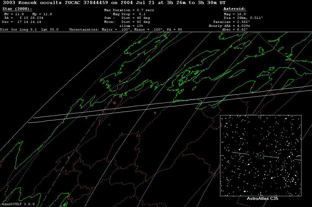 Occultation of 2UCAC 37844459 by 3003 Koncek on 2004 Jul 21