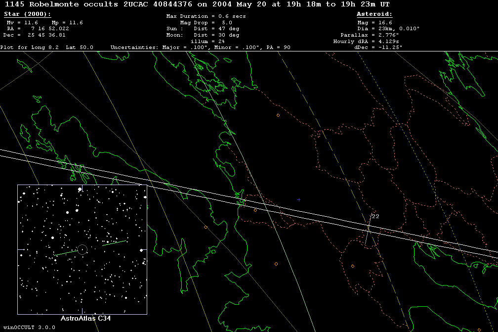 Occultation of 2UCAC 40844376 by 1145 Robelmonte on 2004 May 20