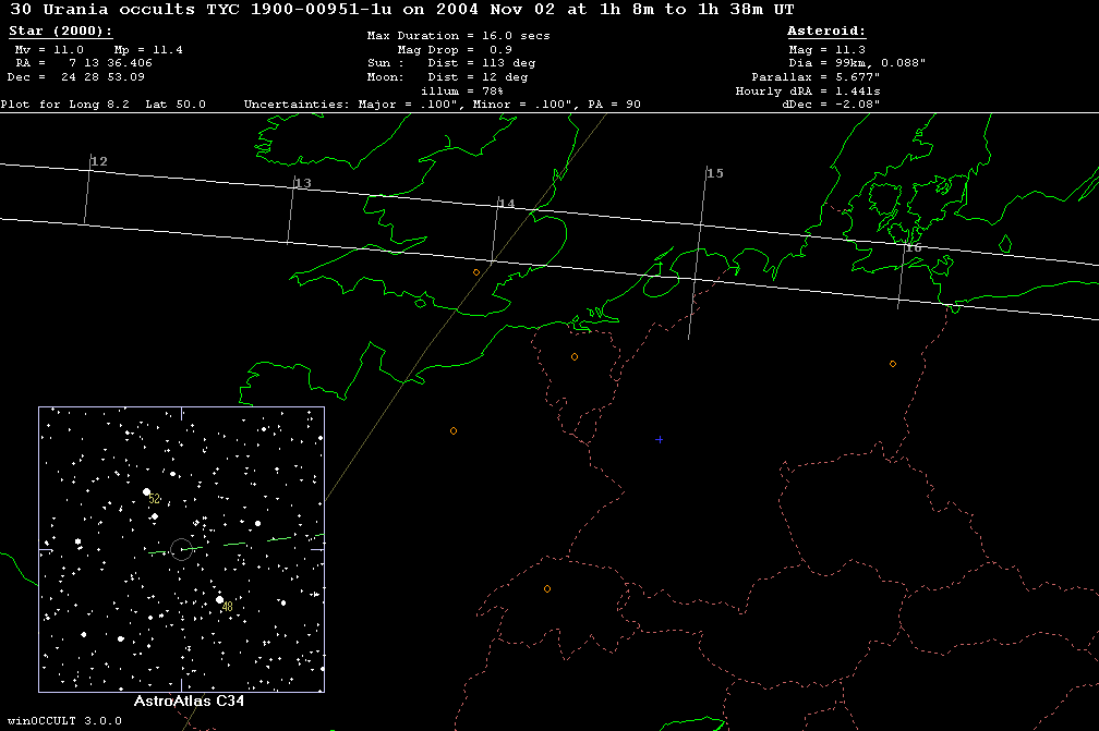 Occultation of TYC 1900-00951-1u by 30 Urania on 2004 Nov 02