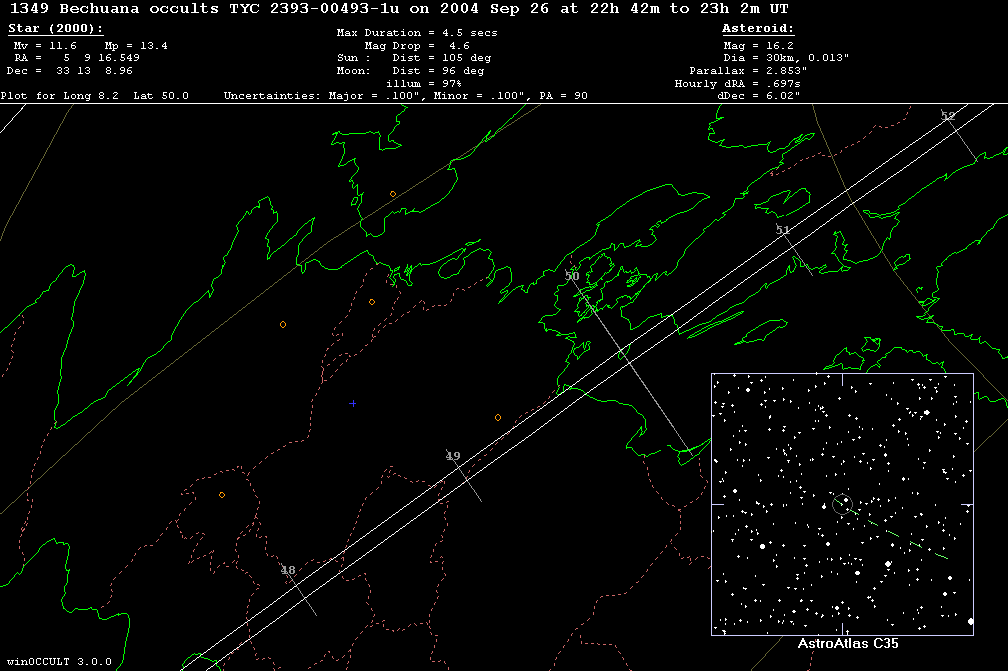Occultation of TYC 2393-00493-1u by 1349 Bechuana on 2004 Sep 26